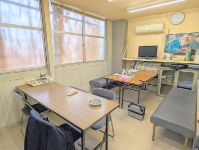 今まではテーブルを縦につなげて並べた「皆さんで横並びに座りましょう」形式だったところが、テーブルが分裂して離れ小島になったことにより、それぞれのスペースに別れて休憩することができるようになりました✨